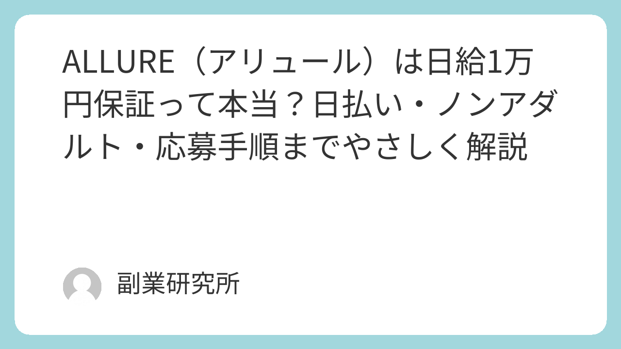 ALLURE(アリュール)は日給1万円保証って本当?日払い・ノンアダルト・応募手順までやさしく解説