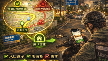 デリバリー副業 Uber:麻生⇄青葉の跨ぎで“もう遅れた”時の回復術|評価を落とさず戻す最短プロトコル