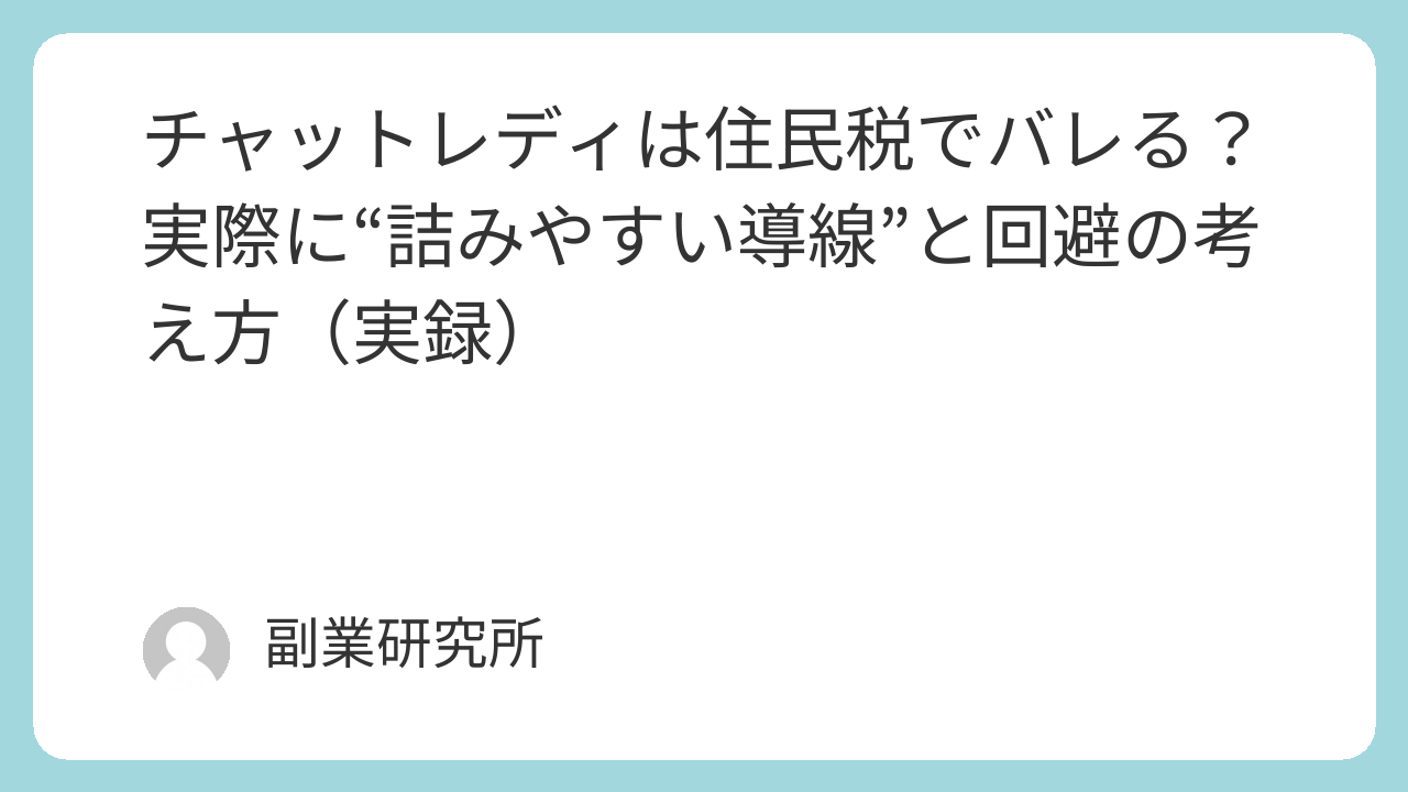 チャットレディは住民税でバレる?実際に“詰みやすい導線”と回避の考え方(実録)