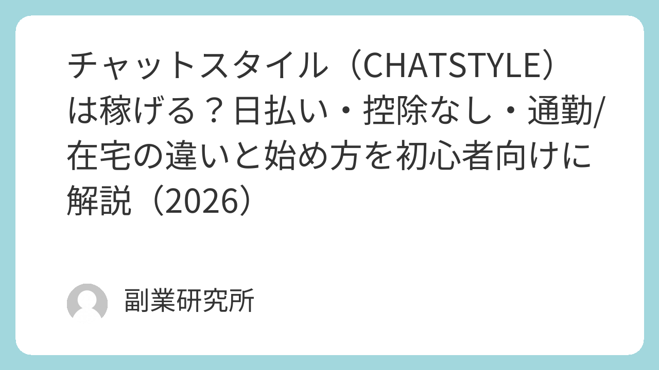 結論:CHATSTYLEは「通勤で日払いを重視したい人」に特に相性がいい