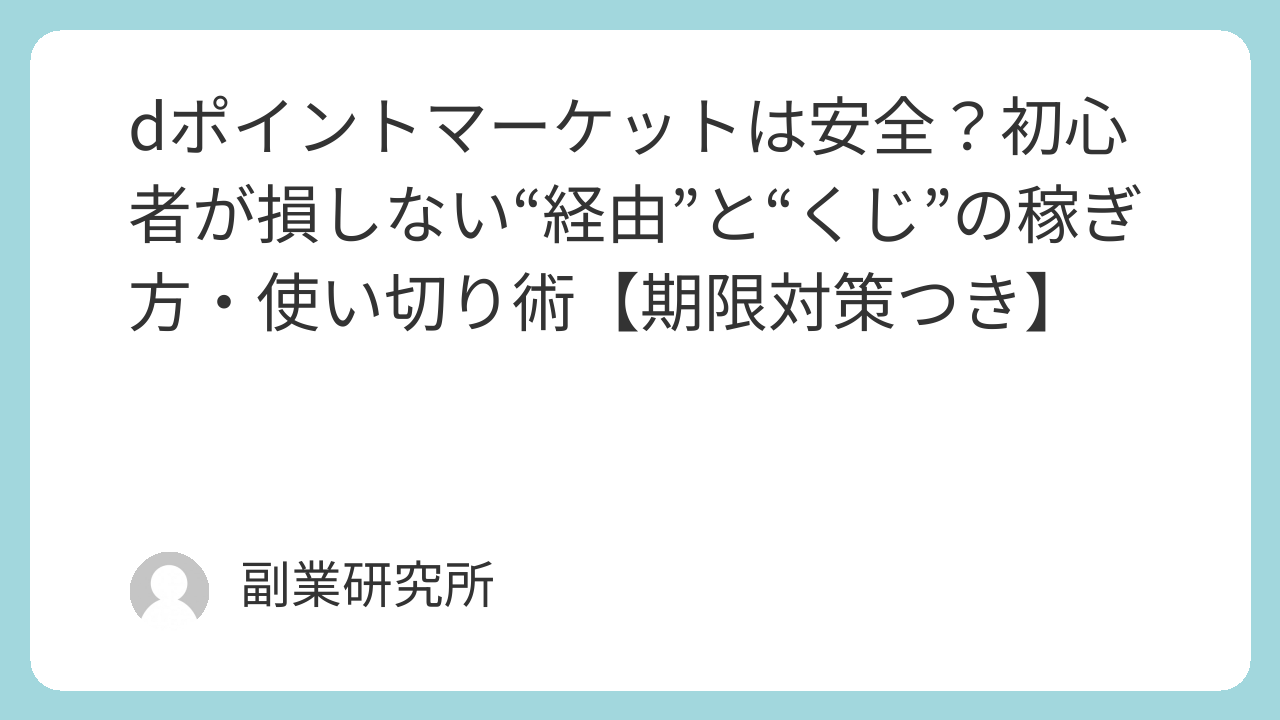dポイントマーケットは安全?初心者が損しない“経由”と“くじ”の稼ぎ方・使い切り術【期限対策つき】