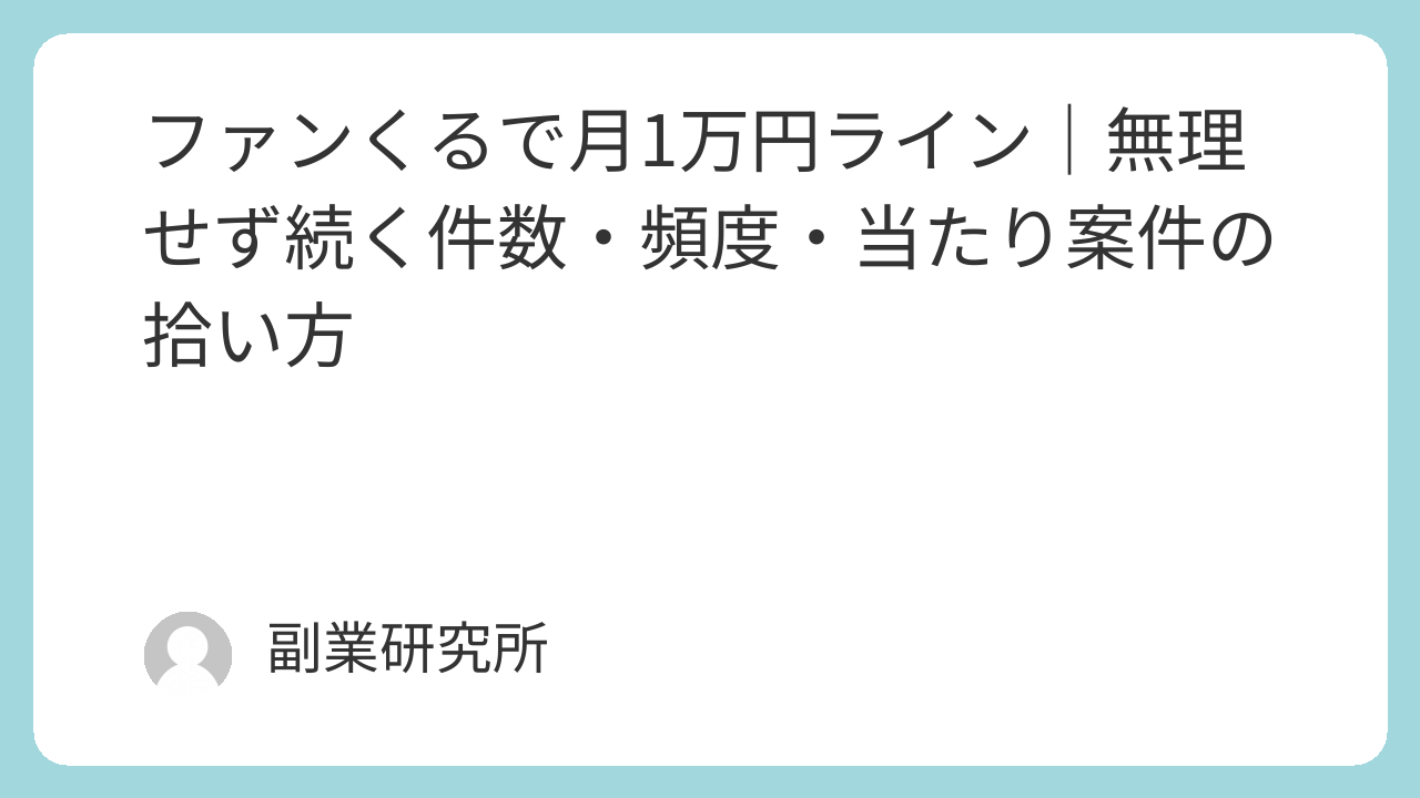 ファンくるで月1万円ライン|無理せず続く件数・頻度・当たり案件の拾い方