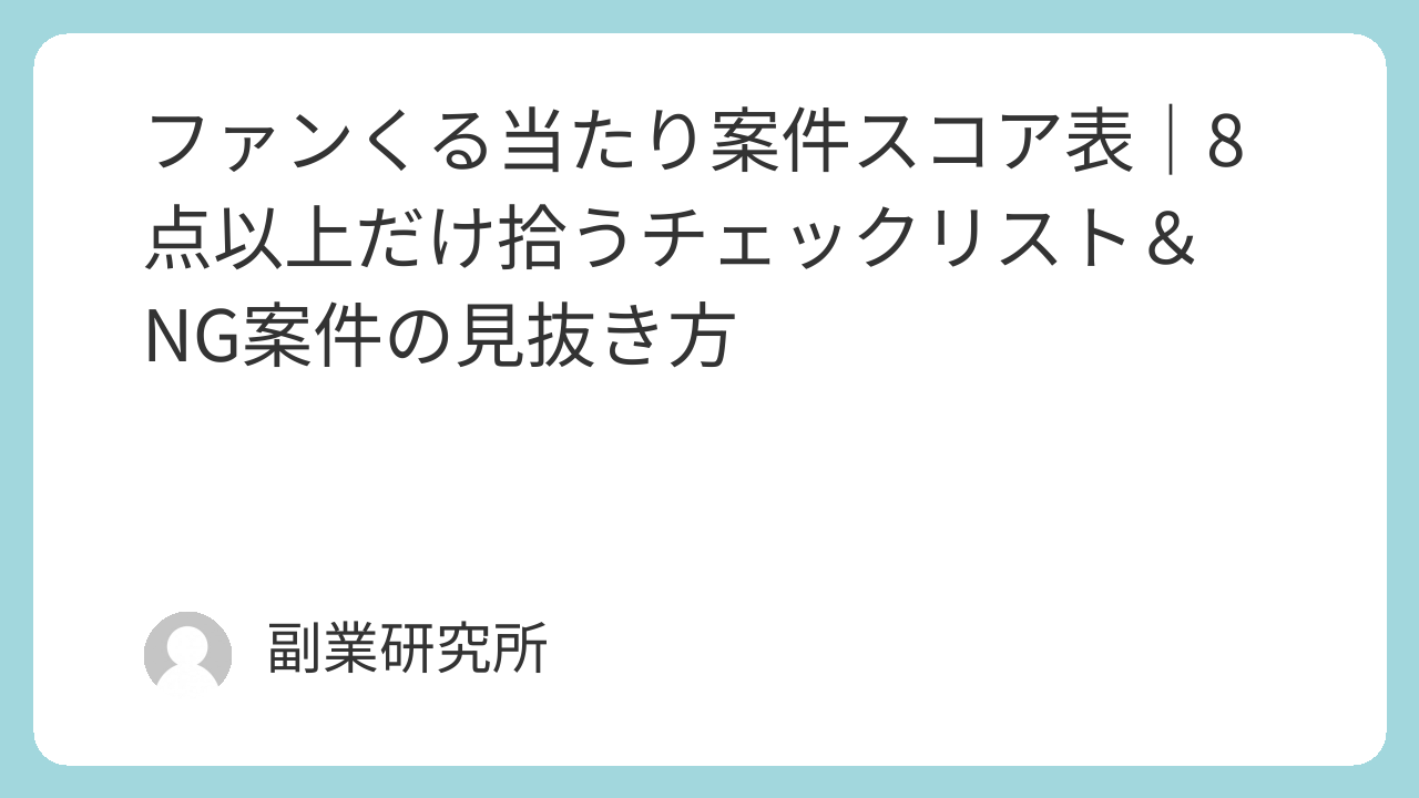 ファンくる当たり案件スコア表|8点以上だけ拾うチェックリスト&NG案件の見抜き方