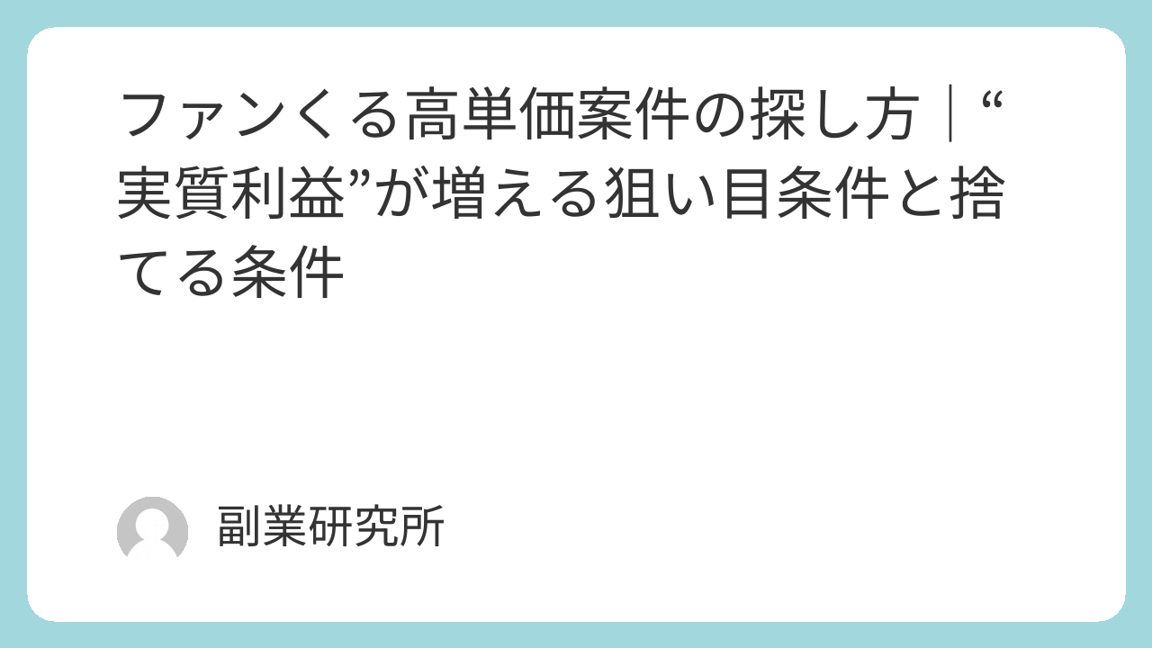 ファンくる高単価案件の探し方|“実質利益”が増える狙い目条件と捨てる条件