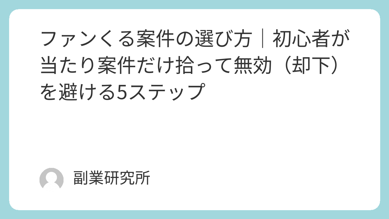 この記事では、ファンくるで当たり案件だけ拾うための実務ルールを、5ステップでテンプレ化します。