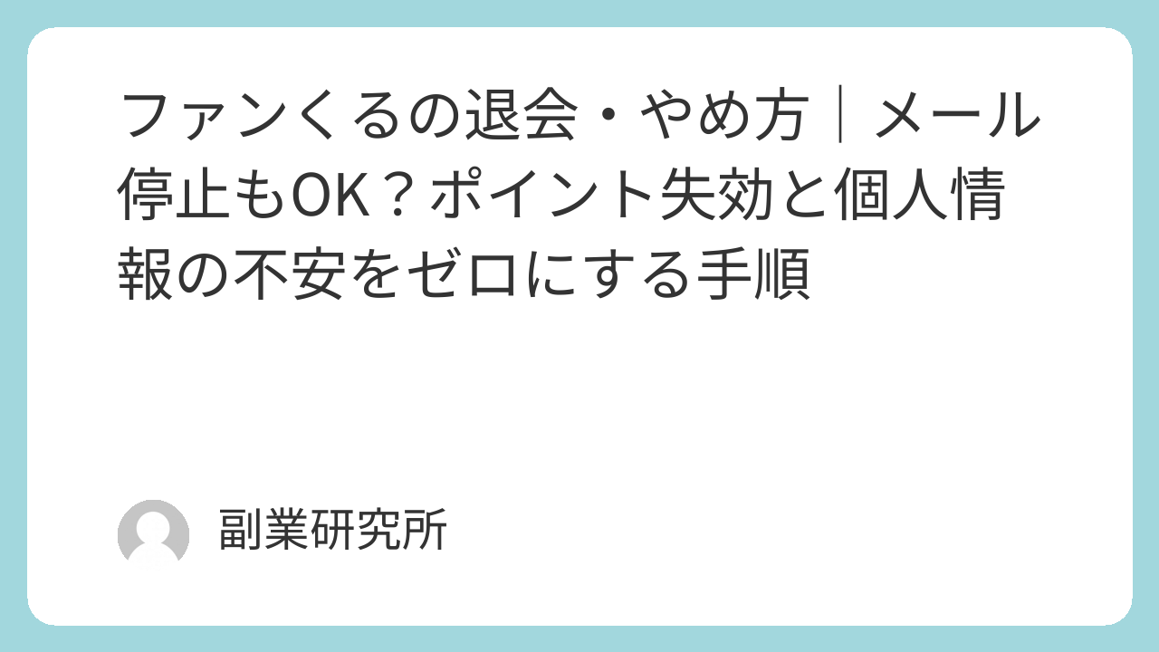 この記事では、ファンくるの退会手順と、メール停止だけで済むケース、そしてポイント失効・個人情報の不安をまとめて潰します。