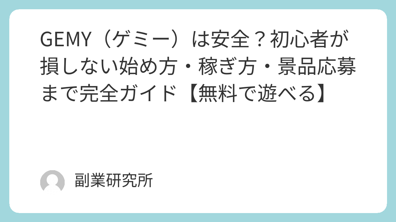 GEMY(ゲミー)は安全?初心者が損しない始め方・稼ぎ方・景品応募まで完全ガイド【無料で遊べる】