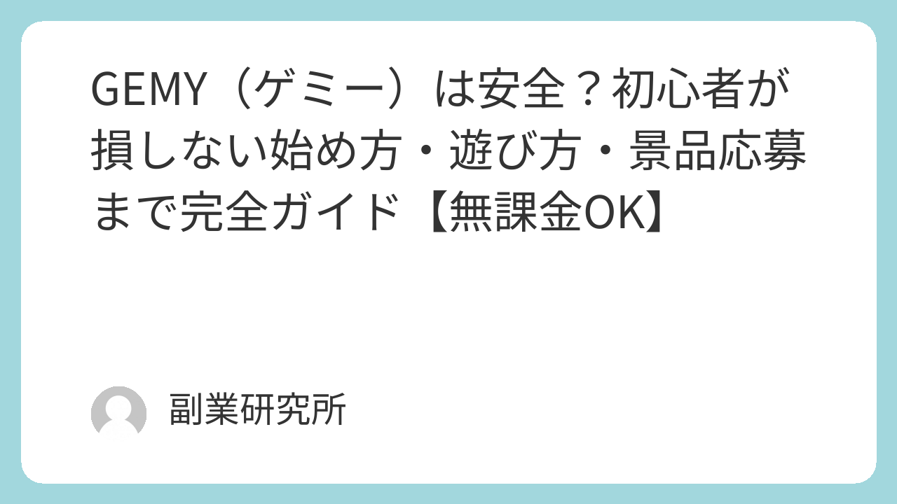 GEMY(ゲミー)は安全?初心者が損しない始め方・遊び方・景品応募まで完全ガイド【無課金OK】