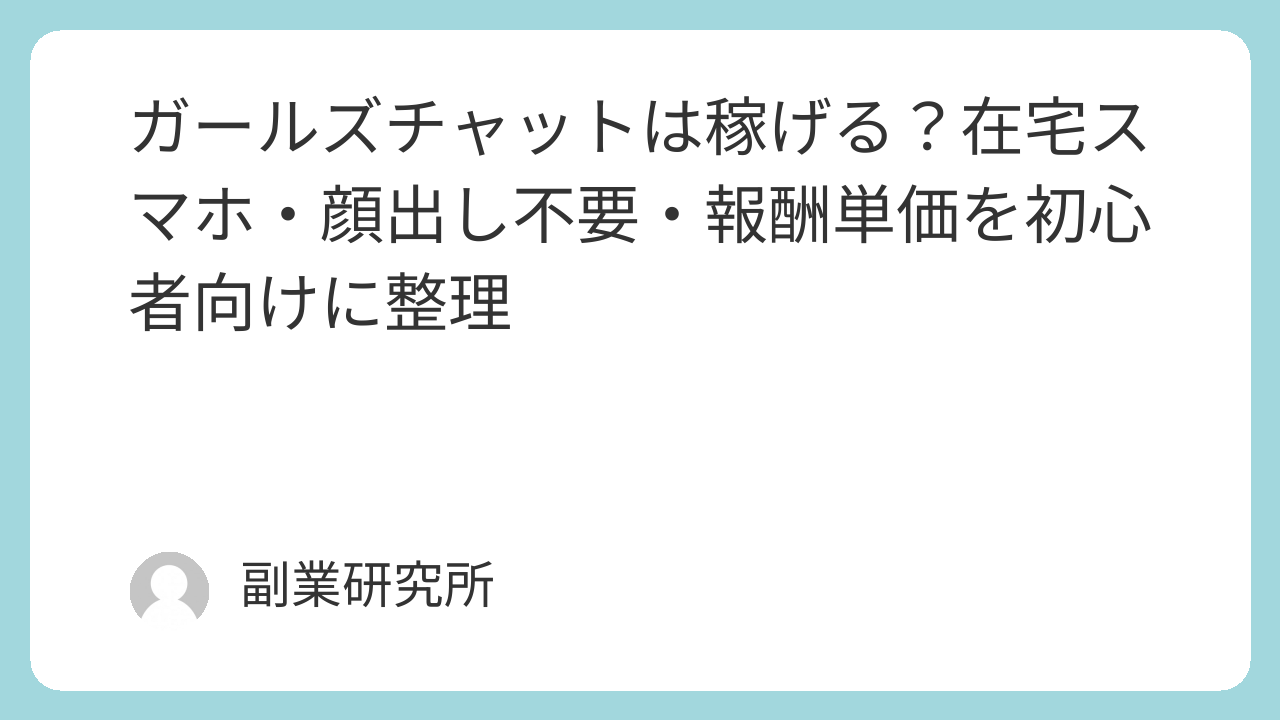 結論:ガールズチャットは「スマホ在宅×顔出し不安」の入口として整理しやすい