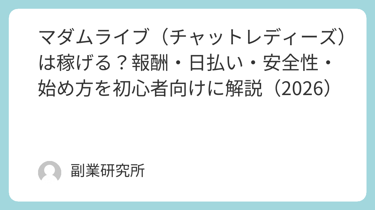 この記事では、マダムライブ(チャットレディーズ)について、公式に掲載されている「報酬の仕組み・日払い・安全対策・よくある質問」をベースに、初心者向けに整理します。