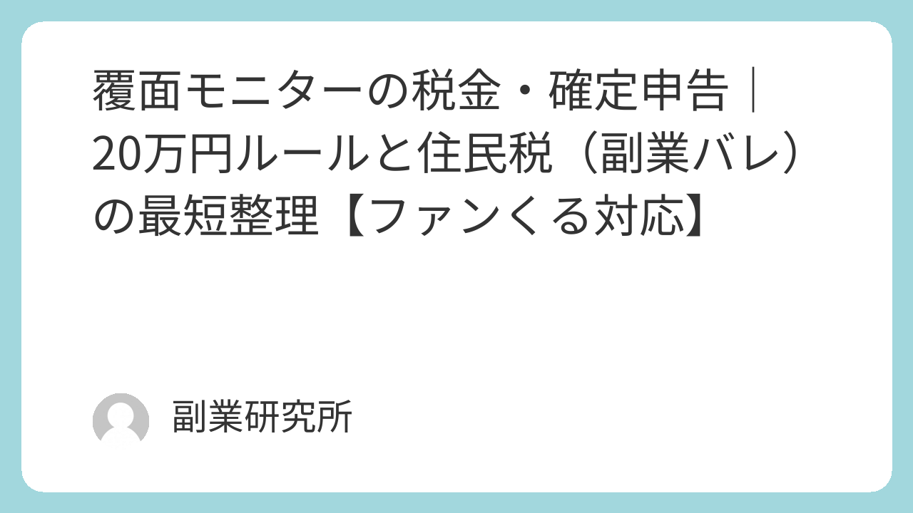 この記事は、ファンくる(覆面モニター)で不安が出やすい「税金・確定申告・住民税(副業バレ)」を、最短で整理します。