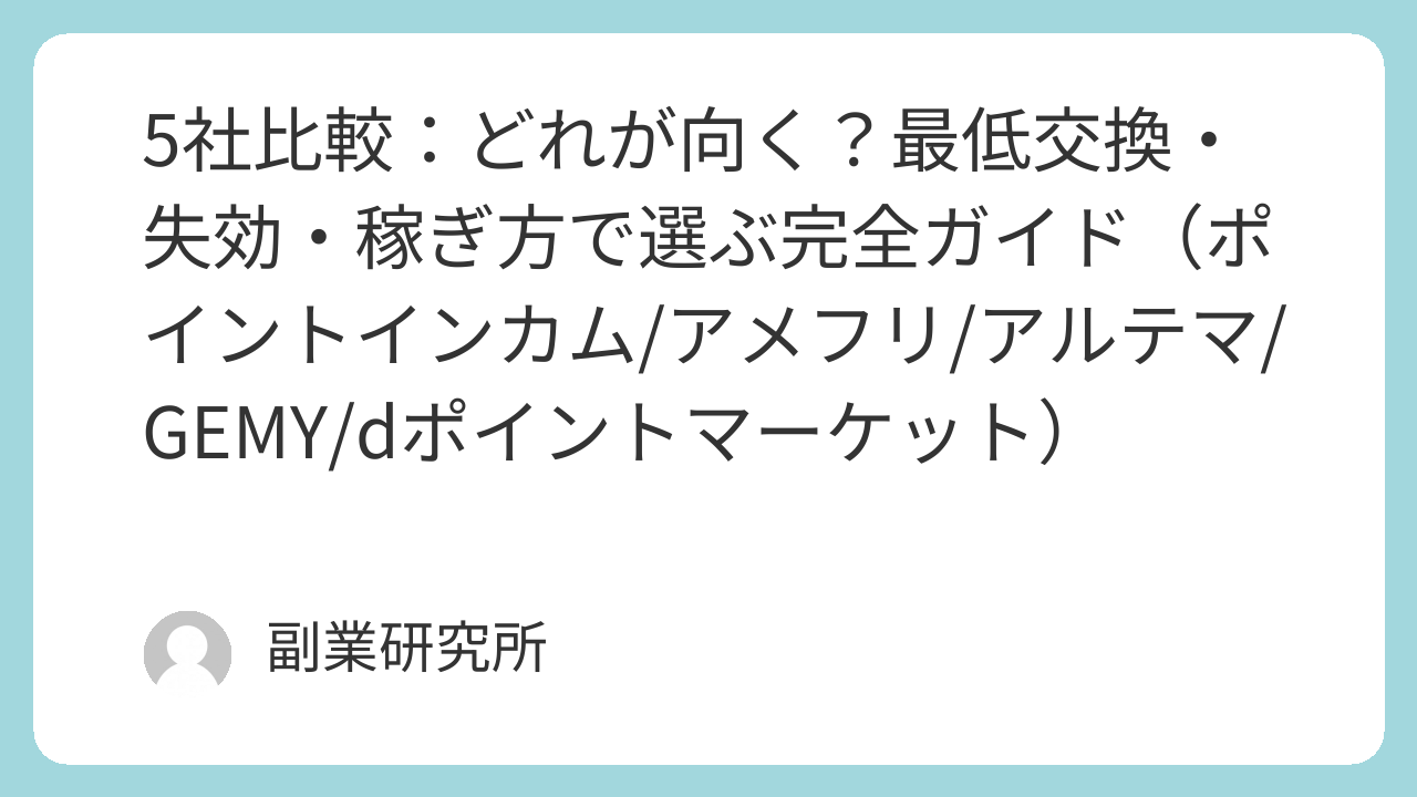 そこで私たちは、人気の5サービスを「最低交換」「失効ルール」「向いてる稼ぎ方」で整理しました。