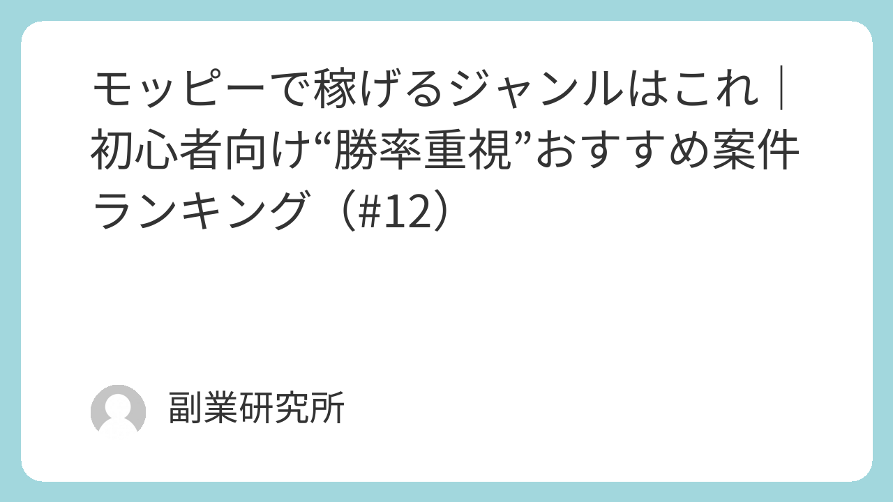 このランキングは「単価」だけじゃなく、初心者が続けられるように勝率を重視します👇