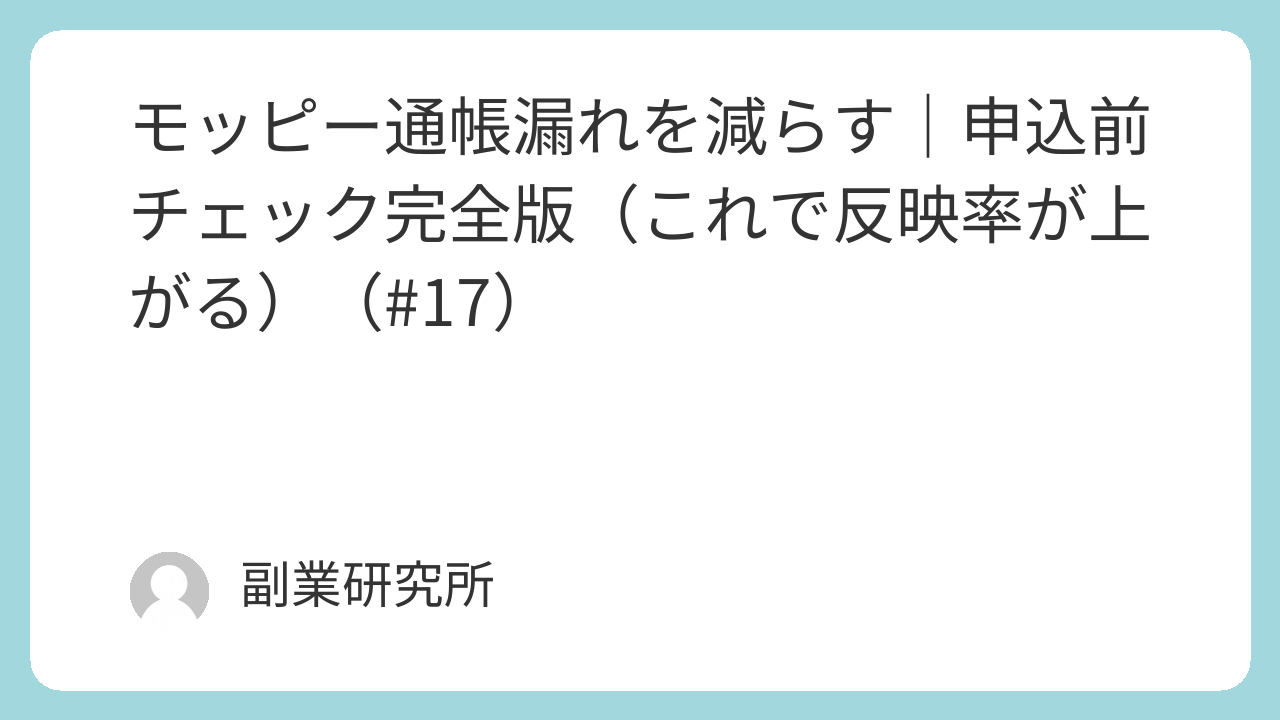 通帳漏れは、この #17 の「申込前チェック」で減らす。
