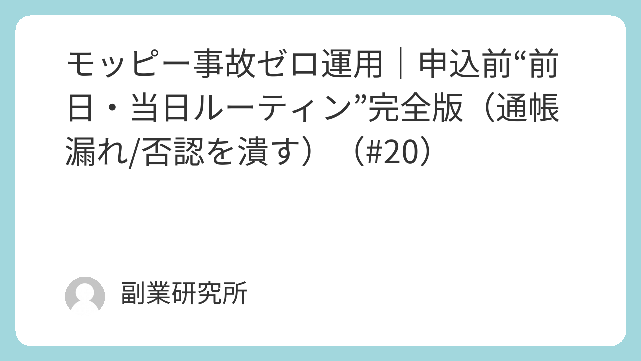 - 👉 #17 通帳漏れを減らす(申込前チェック)