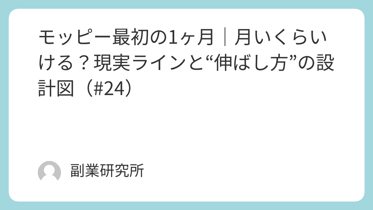 モッピー最初の1ヶ月|月いくらいける?現実ラインと“伸ばし方”の設計図(#24)
