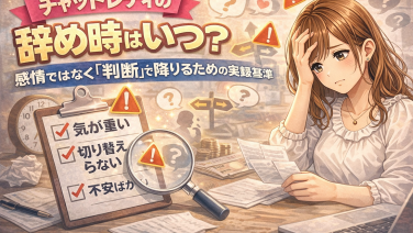 チャットレディを辞めたいのに辞められない原因(心理・規約・生活導線・金銭・罪悪感)を分解し、揉めずに抜けるための考え方と手順を実録ベースで整理。退会連絡テンプレ、身バレ防止、データ削除の確認ポイントも掲載。