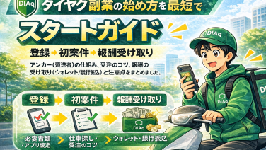 ダイヤク(DIAq)の始め方を、登録→初案件→報酬受け取りまで最短で解説。アンカー(運送者)の仕組み、受注のコツ、報酬の受け取り(ウォレット/銀行振込)と注意点をまとめました。