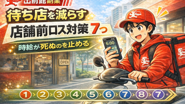 出前館のピーク後は疲労・判断ミス・戻り地獄で平均単価が崩れやすい。補給(飲み物/糖/塩)、短い休憩、戻り処理(戻る方向・立ち位置)を10分で整える“リセット手順”をテンプレ化。午後・夜の失速を防ぐ。